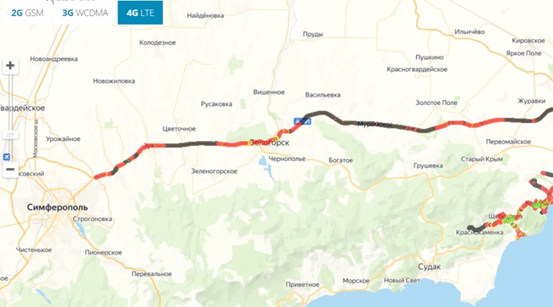 Отдельный пункт в обеспечении мобильной связью – покрытие трасс, особенно актуальное в курортном регионе. Согласно данным портала качествосвязи.рф, проблем с голосовой связью стандарта 2G практически нигде нет. Но уже с 3G и особенно с 4G – почти фаталити. Например, трасса «Таврида» от Симферополя до Феодосии на апрель 2022 года – сплошь в черном и красном цвете, с единичными зелеными и желтыми просветами. От Феодосии до Керчи (на июль прошлого года) – лишь два зеленых «пятна». Чуть лучше от столицы Крыма до Севастополя, но во многом благодаря прохождению трассы через Бахчисарай.