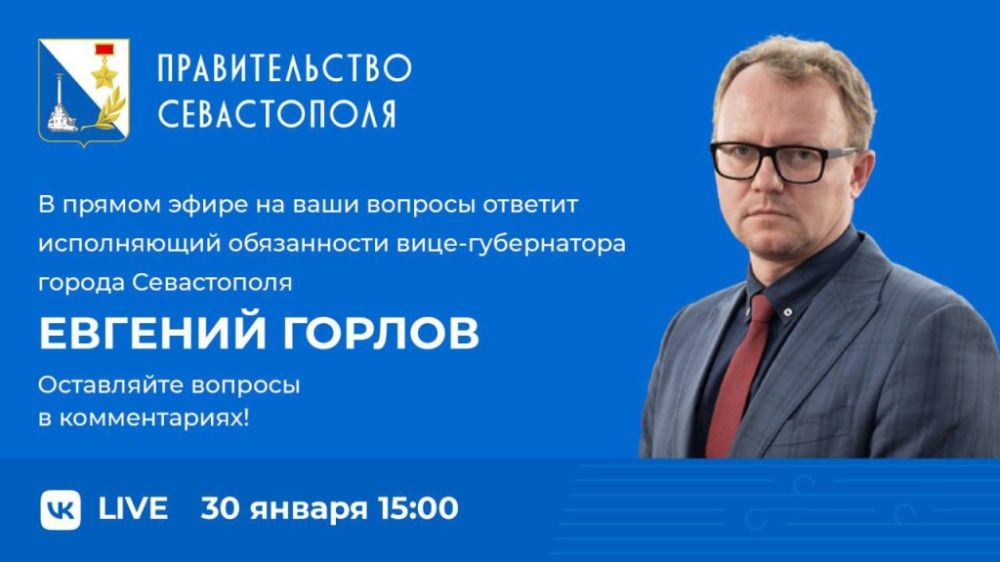 В понедельник, 30 января, в группе правительства Севастополя в социальной сети «ВКонтакте» состоится прямой эфир с исполняющим обязанности вице-губернатора Евгением Горловым.