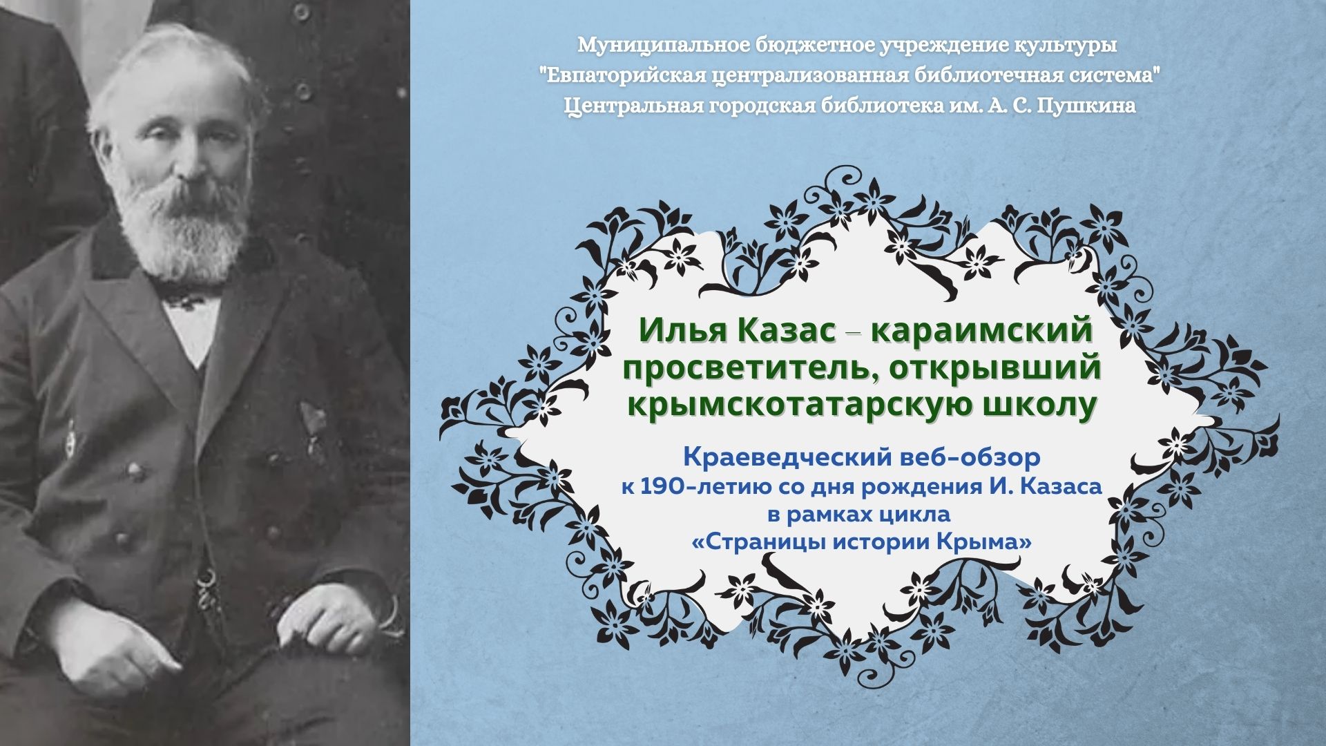 Познакомиться более подробно с этим замечательным представителем караимов Крыма предлагает абонемент центральной городской библиотеки им. А. С. Пушкина.