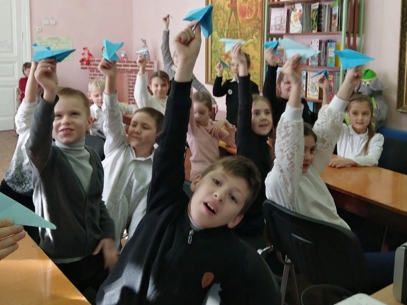 Сотрудники детской библиотеки им. Ю. Гагарина пригласили своих читателей на познавательный час «Как человек научился летать» . Учащиеся 2-3 классов ГБОУРК «Евпаторийская санаторная школа-интернат» узнали об истории летательных аппаратов, известных авиаконструкторах, авиационных профессиях. Ребята ответили на вопросы викторины «Крылья России», приняли участие в конкурсах «И не только самолёты» и «Сказочные летательные аппараты». На мероприятии «работало» Конструкторское бюро «Летающие бумажные игрушки». Юный «конструктор», читатель библиотеки Бирюков Илья, который посещает кружок моделирования, провёл мастер-класс по созданию бумажных самолётиков.