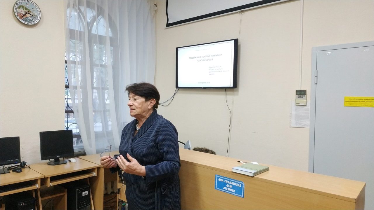 В работе чтений приняла участие методист по научно-просветительской деятельности Абдураманова Шефика Аметовна, выступившая с докладом в сопровождении слайдов «Крымскотатарские тамги в системе геральдики тюркских народов»
