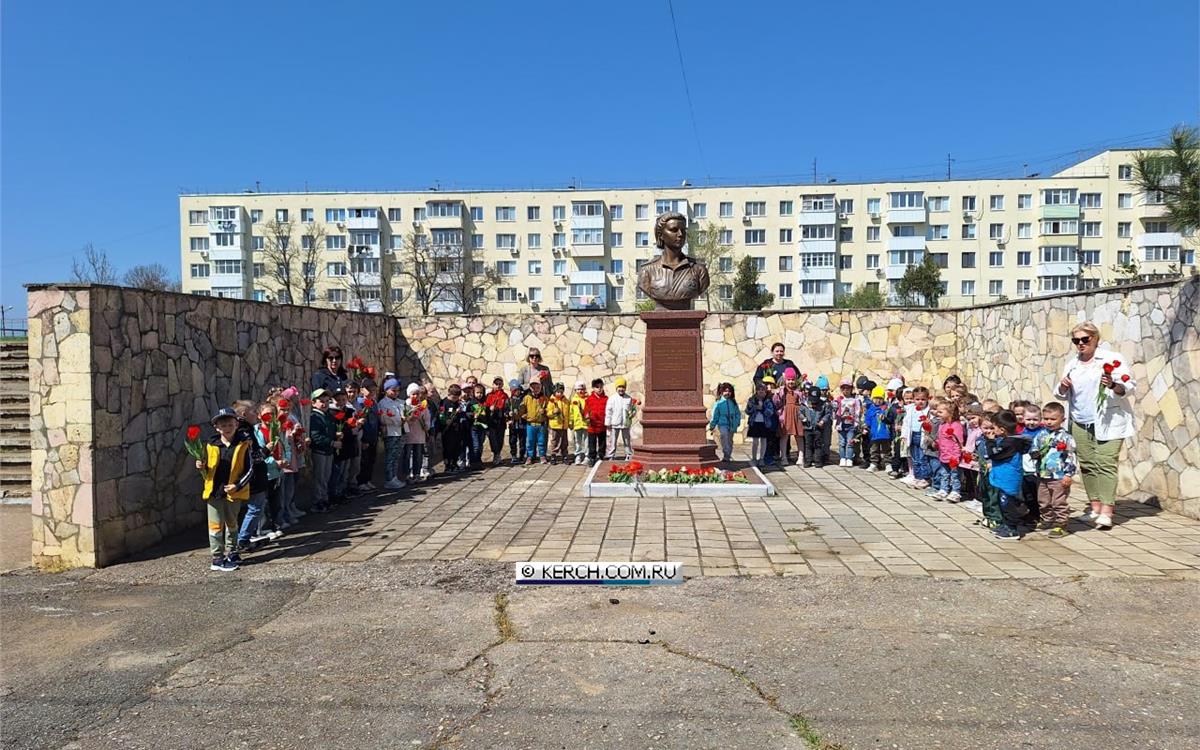 В день освобождения Города-Героя Керчи от немецко-фашистских захватчиков воспитанники дошкольного отделения на базе гимназии № 1 вместе с воспитателями возложили цветы к бюсту Героя Советского Союза Е. И. Дёминой.