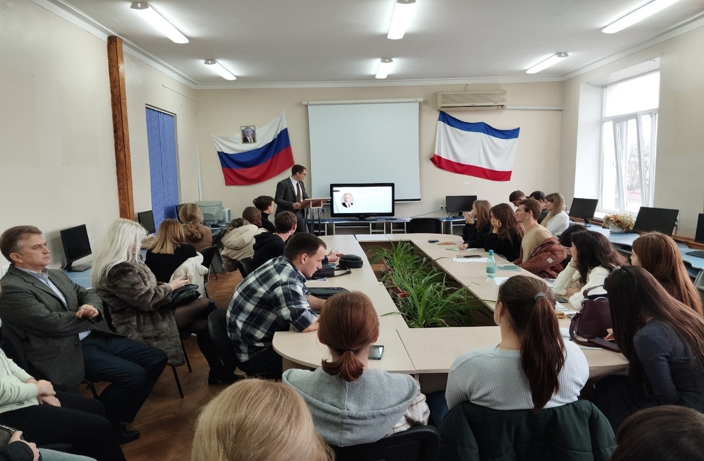 11 декабря на кафедре финансов и кредита, в рамках мероприятий приуроченных ко Дню борьбы с коррупцией, состоялась ежегодная встреча обучающихся Института экономики и управления, а также обучающихся Агротехнологической академии с заведующим отделом кадровой, организационной работы и противодействия коррупции инспекции экспертно-аналитического и организационного обеспечения Счетной палаты Республики Крым – Коваленко Иваном Игоревичем.