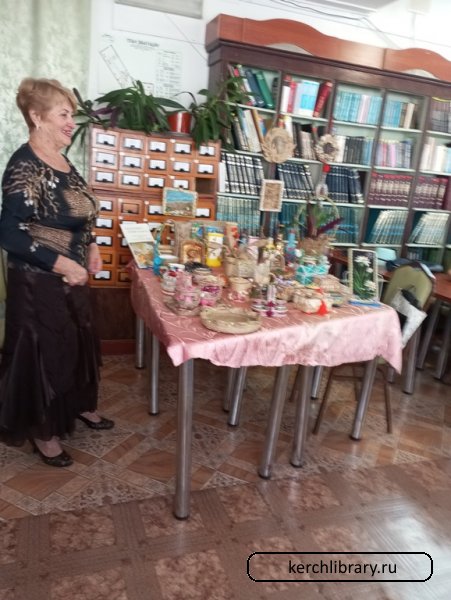 Валентина Александровна рассказала присутствующим, с чего начиналось её творчество, показала, какие материалы использует в своей работе. На протяжении сентября месяца керчане, гости города, читатели библиотеки могли любоваться её изделиями. Они были выставлены в читальном зале на выставке «Рукам работа — сердцу радость». В Тетради отзывов о выставке посетители библиотеки оставили записи: «У мастера богатая фантазия, хороший вкус, огромное трудолюбие», «Получили большое эстетическое наслаждение от всех поделок», «Очень изящные теплые, радостные работы, вызывающие массу положительных эмоций».