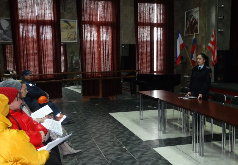 В рамках Всекрымской социальной акции «Если не чужды отвага и честь – ТЫ нужен здесь!», а также в целях популяризации профессии полицейского, сотрудники подразделения по работе с личным составом УМВД России по г. Керчи встретились с трудовым коллективом Керченского торгового порта.