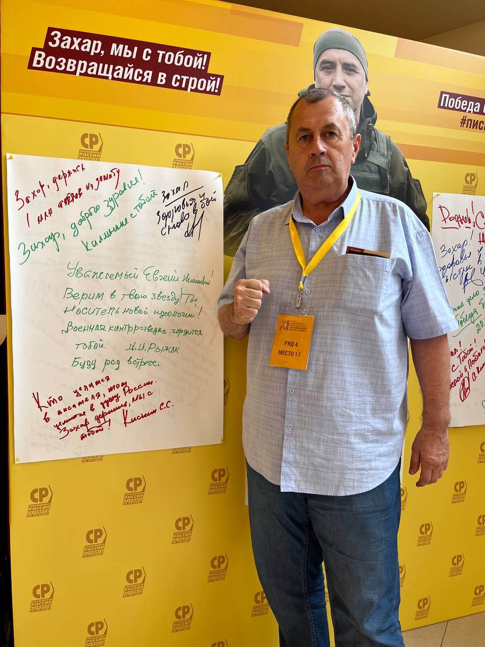Помимо участия в работе съезда и рабочих совещаниях, руководитель справороссов Республики Крым присоединился к акции "Письмо Захару" в поддержку Сопредседателя СРЗП Захара Прилепина. От имени социалистов полуострова Степан Степанович Кискин написал: "Кто целится в писателя, тот целится в душу России. Захар, держись, мы с тобой!"