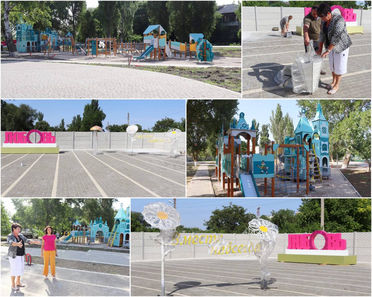 В рамках благоустройства общественной территории в сквере уложили новую плитку, установили детскую площадку и размещают фотозону.