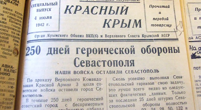Мы привыкли, что июль должен быть жарким, уверены, тогда в Севастополе было пекло не только военное, а между тем история метеонаблюдений говорит: начало второго летнего месяца в 1942-м прохладное - 3-5 июля всего 8-9 градусов. Там, на побережье, в расщелинах скал, люди, разгорячённые боями, наверное, ощущали перепад температуры, но всё же их терзало иное - их бросали, без боеприпасов (у многих последний патрон для себя), раненых, контуженных, но готовых ещё сражаться - до последнего. Для эвакуации к Севастополю смогли подойти лишь несколько подлодок, сторожевых катеров и долететь несколько самолётов. Первым, вечером 30 июня, покинуло город основное командование Севастопольского оборонительного района, Черноморского флота и Приморской армии, «ответственные работники», за три дня эвакуации их вывезли более двух тысяч.