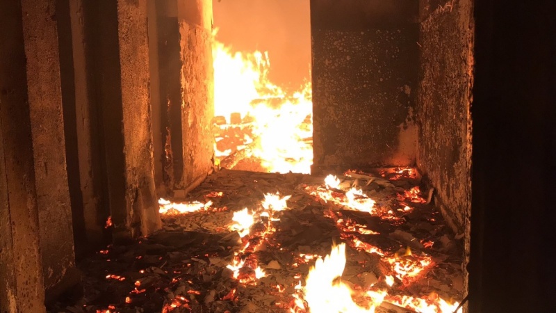 Фото: пресс-служба МЧСПо данным следствия, в начале марта мужчина, испытывая злобу к соседям, предпринял попытку поджога их квартиры. Он взобрался на стремянку, разбил окно квартиры, забросил в комнату несколько банок с горючей смесью и источник огня.