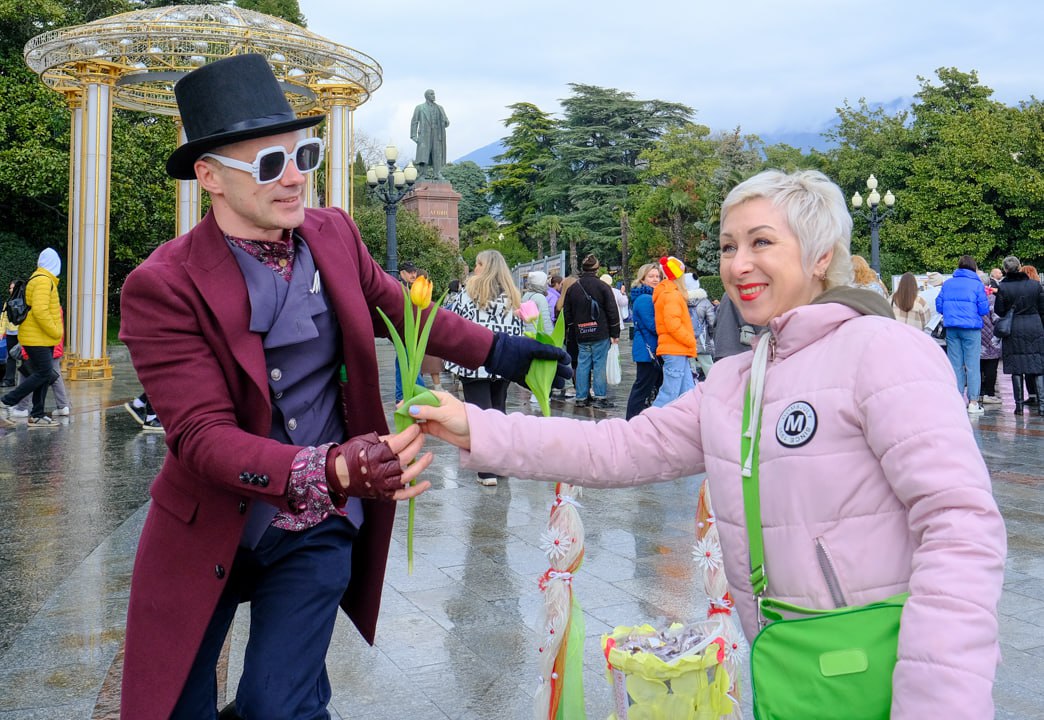 8 марта в центре Ялты женщинам дарили цветы