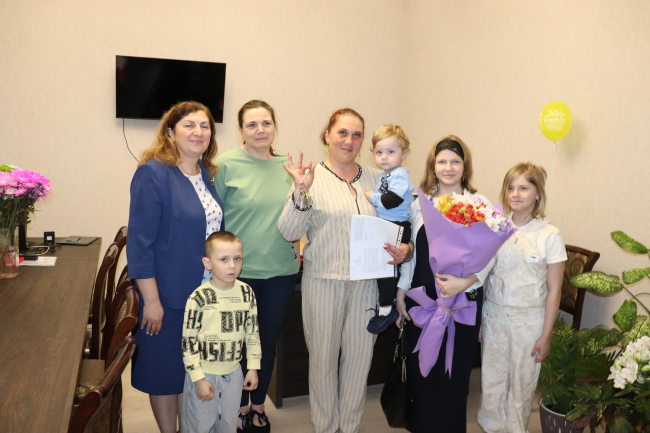Глава администрации Ялты поблагодарила сотрудников Управления жилищной политики за качественно проведённую работу по оформлению документов и пожелала обеим семьям счастья на новом месте.