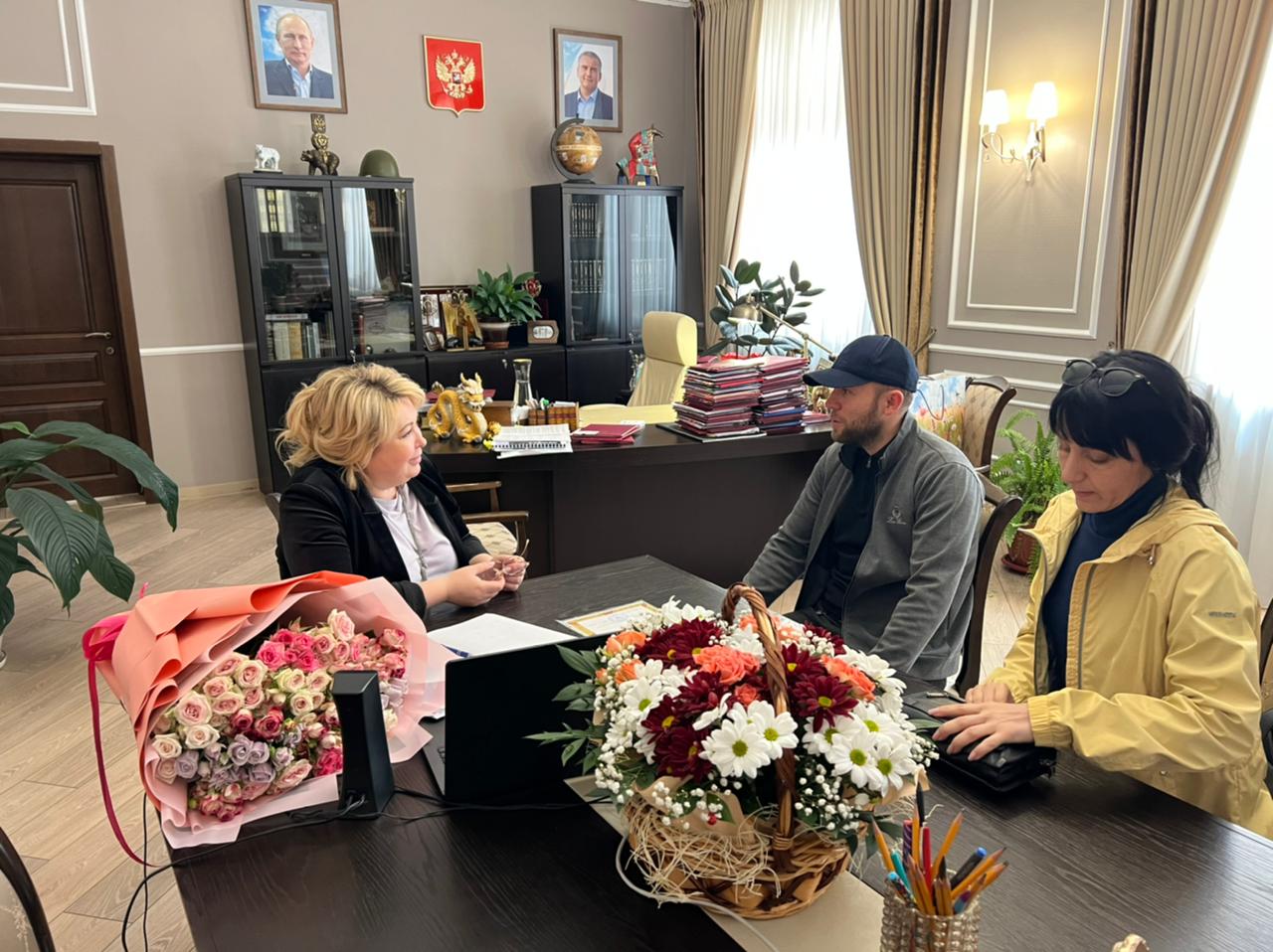 Во встрече с главой Военно-гражданской администрации Ивановского муниципального округа Александром Васалатым помимо Янины Павленко приняли участие её заместитель Сергей Баннов и помощник Александр Кравченко.