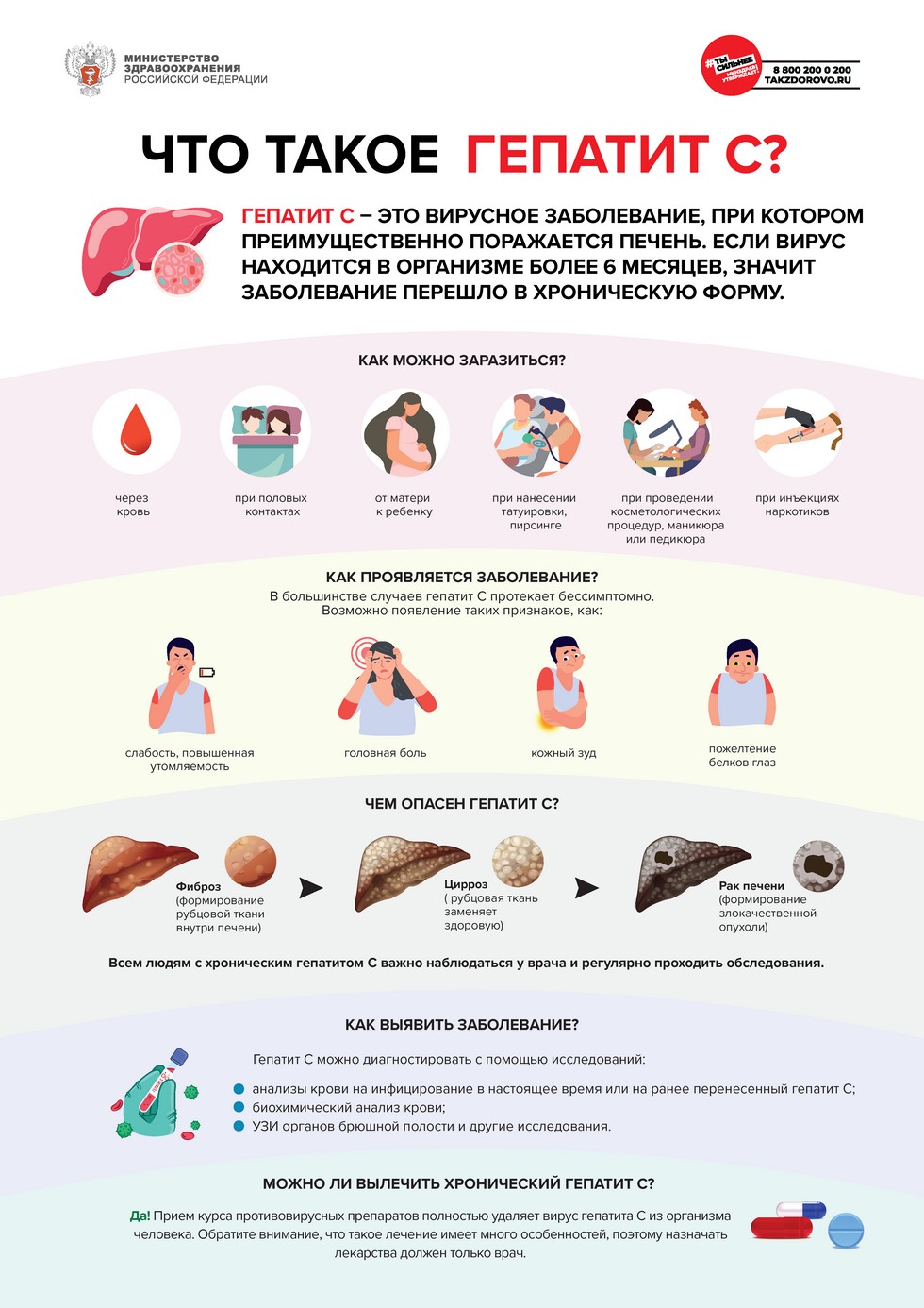 Прием курса специальных противовирусных препаратов приводит к полному удалению (элиминации) вируса из организма человека и выздоровлению от гепатита С.